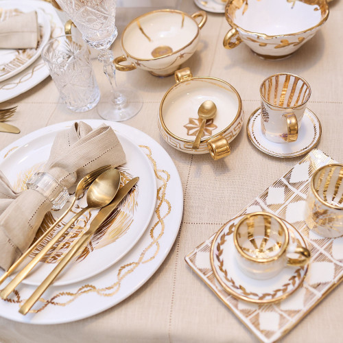 Gourji Ceramics – новая линия бренда, которая на сегодняшний момент насчитывает 5 коллекции.Коллекция «Пшеница» – флагманская коллекция Gourji Ceramics, вдохновлённая советским классицизмом и убранством Московского метрополитена.Каждый предмет коллекции уникален и изготовлен вручную, за счёт чего предметы имеют оригинальную форму и могут незначительно отличаться по исполнению рисунков на них.В коллекцию входят чайные и кофейные наборы, кувшины и вазы, блюда и салатницы и другие декоративные предметы, что позволяет собрать сервиз по любой вкус.