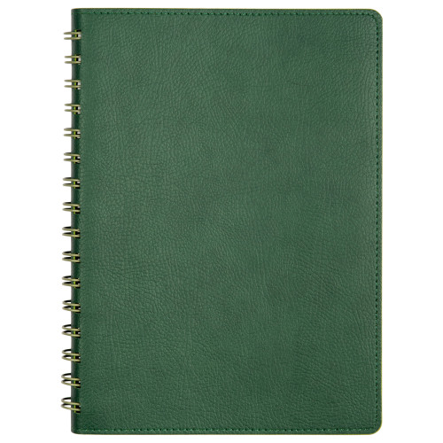 Недатированный ежедневник в гибкой обложке со скругленными уголками из искусственной кожи. Обложка выполнена из сшивки двух материалов. Внешний материал обложки матовый, с некрупным рельефом под натуральную кожу. Цвет – зеленый, приглушенный, однородный. Внутренний материал обложки – Latte – бархатистый, мелкозернистый, однородного яркого салатового цвета. По периметру обложки выполнена прошивка в тон. Форзац и нахзац контрастные, салатовые. Теплые кремовые страницы со скругленными уголками выполнены из гладкого шелковистого офсета. Срез матовый, в тон страниц. Ежедневник надежно скреплен полускрытой пружиной в цвет внутреннего материала обложки. Изделие комплектуется вкладышем с цветными стикерами и индивидуальной упаковкой.Упаковка: пластиковая коробка – есть