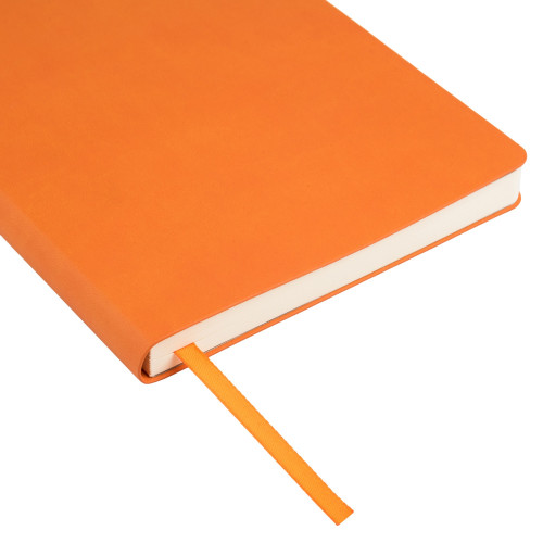 Недатированный ежедневник выполнен в насыщенных природных тонах, делающих образ изделия ярким и в то же время спокойным. Гибкая обложка со скругленными уголками выполнена из материала «вельвет» с чуть заметно проступающей фактурой нубука. На ощупь гладкая. Не подвержена заломам и расслоению. Цвет обложки – насыщенный оранжевый, однородный. Гармонично контрастирует с коричневым цветом матовых форзаца и нахзаца, создавая изделию осеннее настроение. Страницы со скругленными уголками приятного теплого светло-кремового цвета, гладкие, слегка шелковистые. Срез матовый, в тон страниц. Одинарное атласное ляссе оранжевого цвета с легким глянцевым отливом создает контраст со срезом, завершая образ бизнес-аксессуара. Ширина ляссе 6 мм.Без упаковки (без стикера)