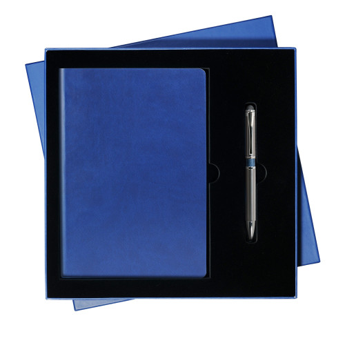 В набор входят:LXX1401141-030/1 - Ежедневник недатированный, Portobello Trend, Sky, 145х210, 256стр, синий(без бум лент, стик)GIFT-BOX-24-BLUE/1 - ПОДАРОЧНАЯ КОРОБКА ПОД ЕЖЕДНЕВНИК+РУЧКА, СИНЯЯ, 250*250 мм, черный ложемент14BP3016-030- Шариковая ручка, iP, наж. мех-м, корпус- металл, синий, сил. стилус