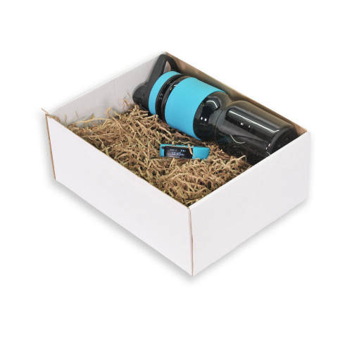 В набор входят:GIFT-BOX-UN-100.1 Подарочная коробка для набора универсальная, белая, 280*215*113 ммGIFT-BOX-UN-filler-020 Бумажный наполнитель для подарочной упаковки, цвет крафт, 50 гр./упак.SB1801-600 Смарт браслет Only, бирюзовыйSB19619-600 Спортивная бутылка для воды Portobello Corsa, 650ml, аква