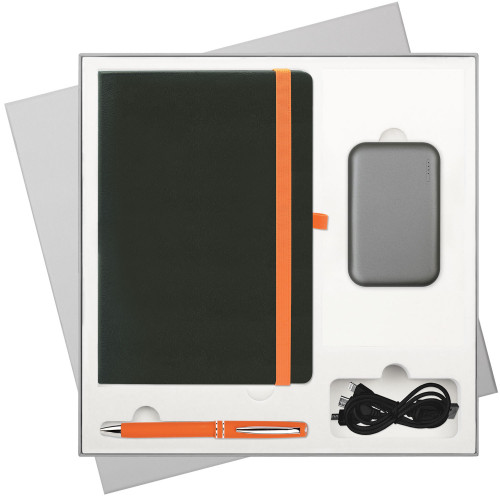В состав набора входят: GIFT-BOX-34.GREY - ПОДАРОЧНАЯ КОРОБКА ДЛЯ НАБОРА СЕРАЯ, 307*307 мм, светлый ложемент, под съемные ложементы181268.040.070 - Ежедневник Portobello Trend, Chameleon NEO, недатированный, зеленый/оранжевый171006.070 - Шариковая ручка Consul, оранжевая37424.080 - Внешний аккумулятор, Velutto, 5000 mAh, серый