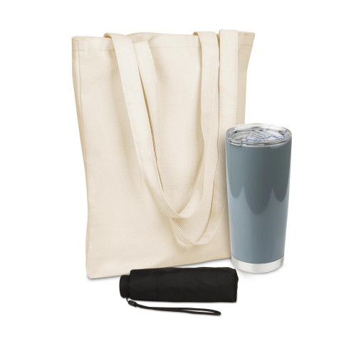 В состав набора входят: 20823.525 - Сумка для покупок Arris, хлопок, 260 г/м2, 36*40*10 cм212021.010 - Зонт складной Solana, черный195391.080 - Термокружка вакуумная, Parma, 590 ml, глянцевое покрытие, серая