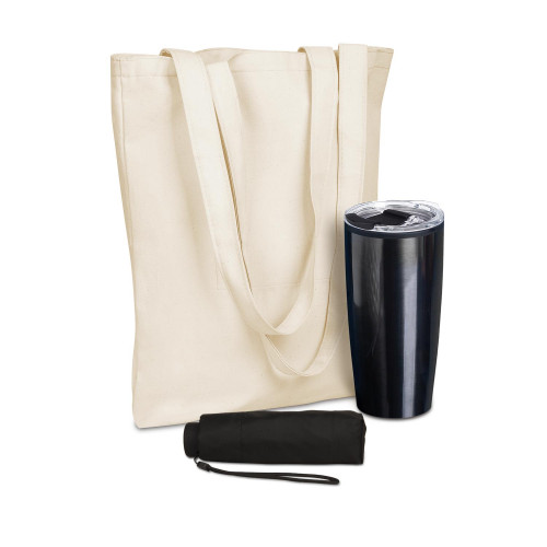 В состав набора входят: 20823.525 - Сумка для покупок Arris, хлопок, 260 г/м2, 36*40*10 cм212021.010 - Зонт складной Solana, черный210047.080 - Термокружка Lima, 500ml, серая
