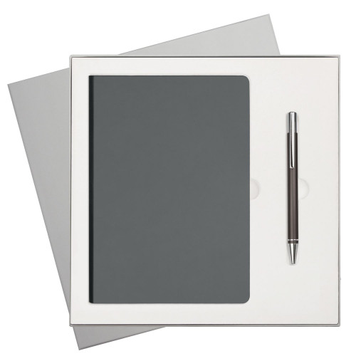 В состав набора входят:GIFT-BOX-24.GREY - ПОДАРОЧНАЯ КОРОБКА ПОД ЕЖЕДНЕВНИК+РУЧКА, СЕРАЯ, 260*260 мм, светлый ложемент19280.080.1 - Ежедневник Portobello Trend, Spark, недатированный, серый (без упаковки, без стикера)153013.080 - Шариковая ручка Regatta, серая