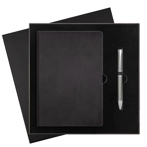 Подарочный набор Rain/iP, черный (ежедневник недат А5, ручка)